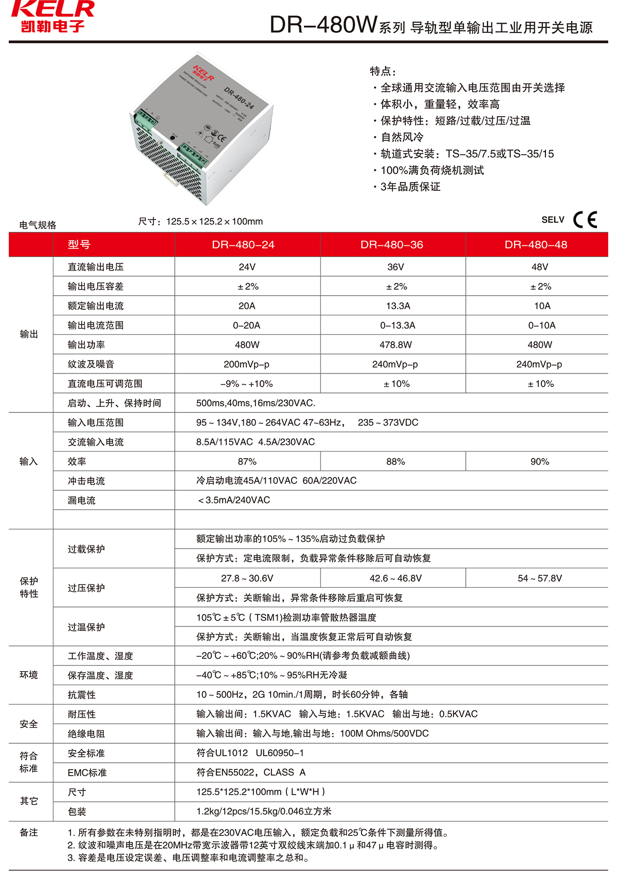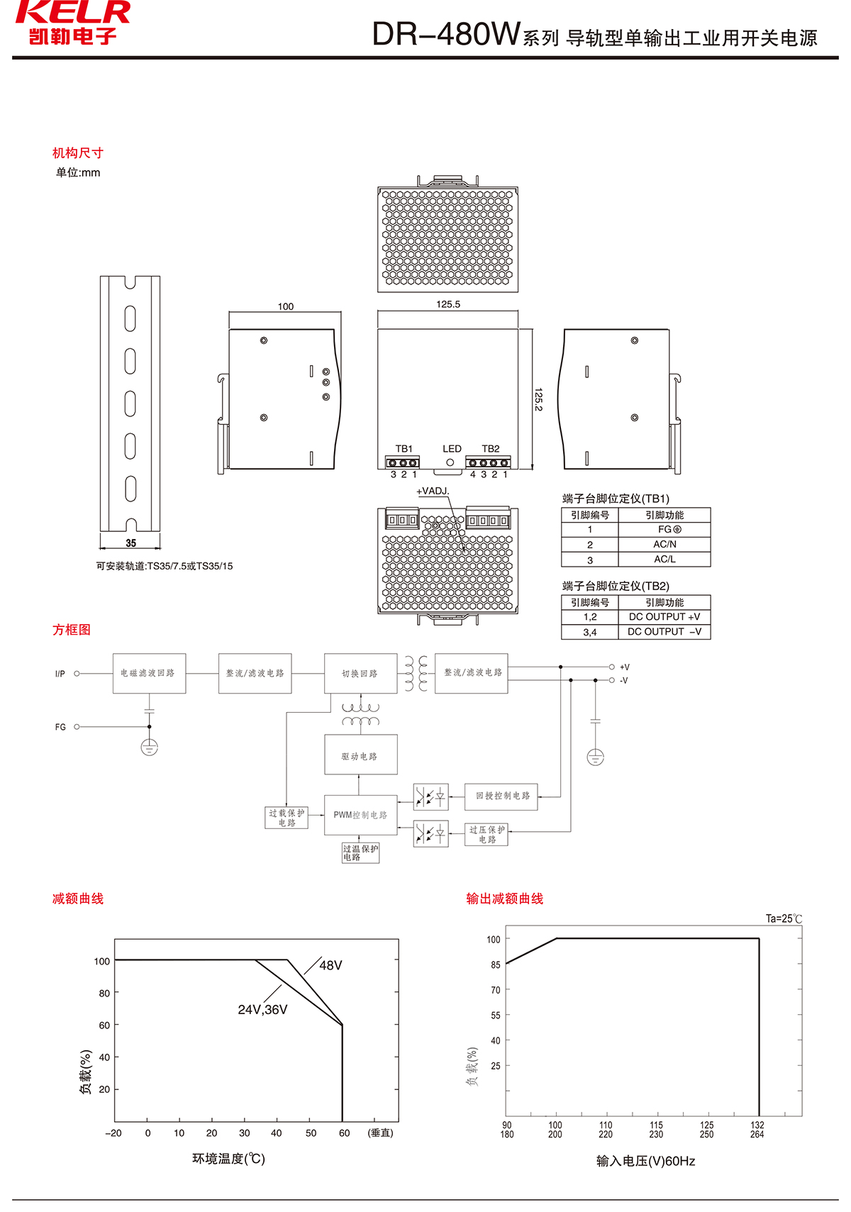 DR-480W 系列 導(dǎo)軌型單輸出工業(yè)用開關(guān)電源