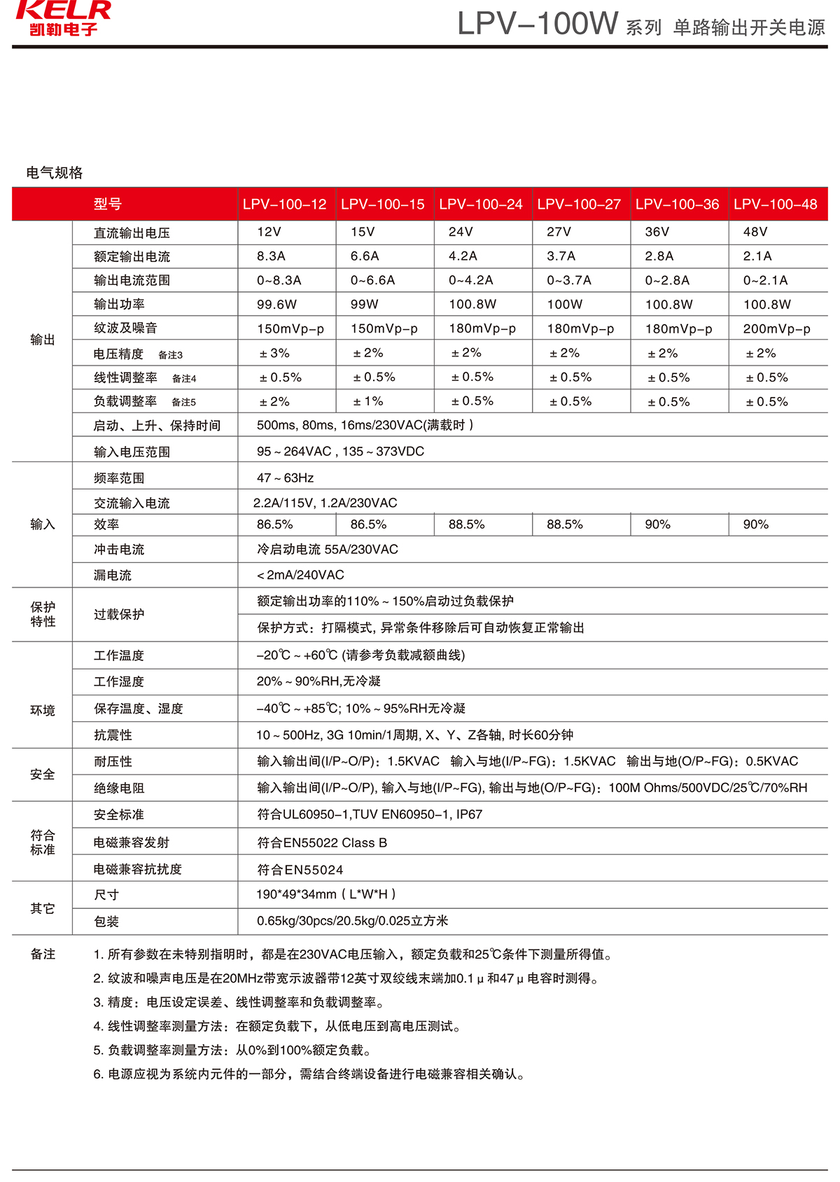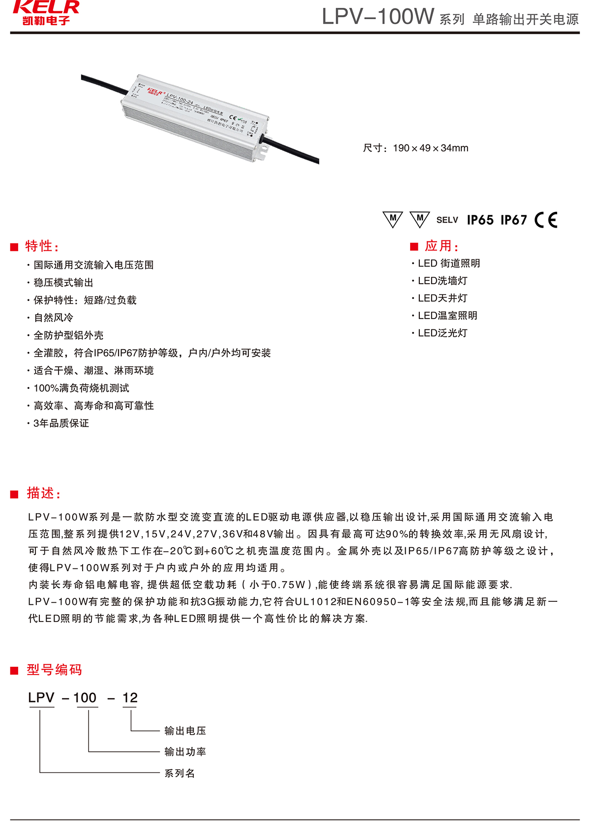 LPV-100-12 系列 單路輸出開關(guān)電源