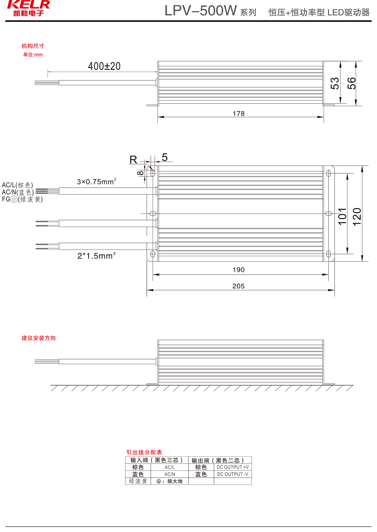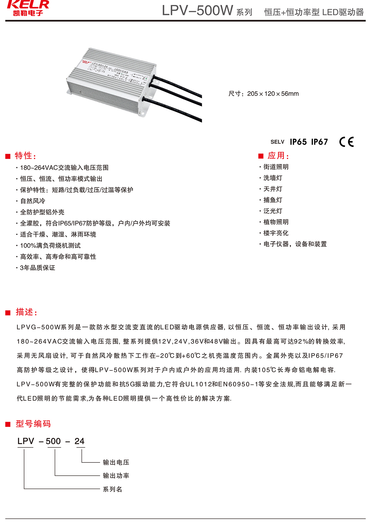 LPV-500-24 系列 恒壓+恒功率型LED驅動器