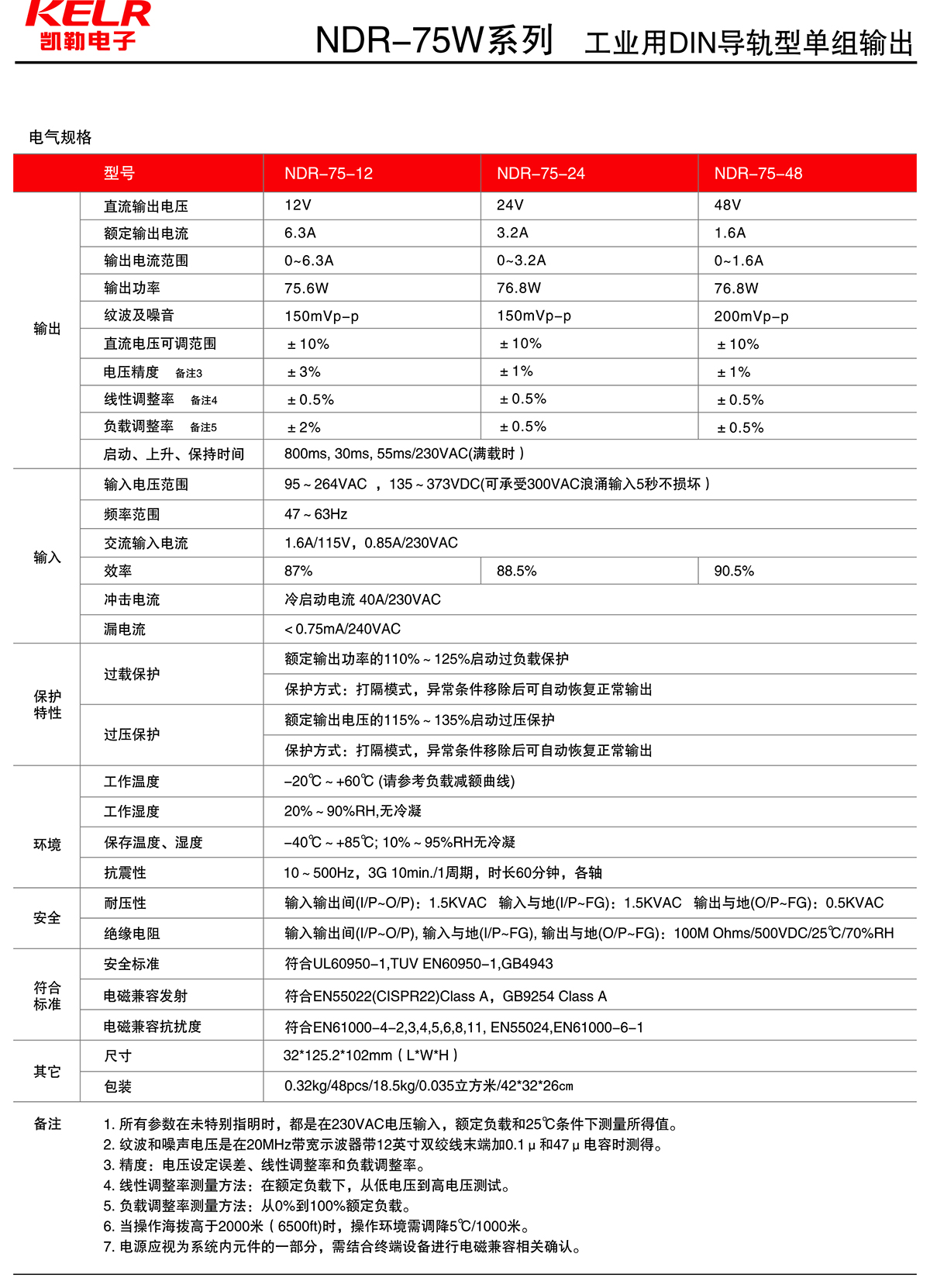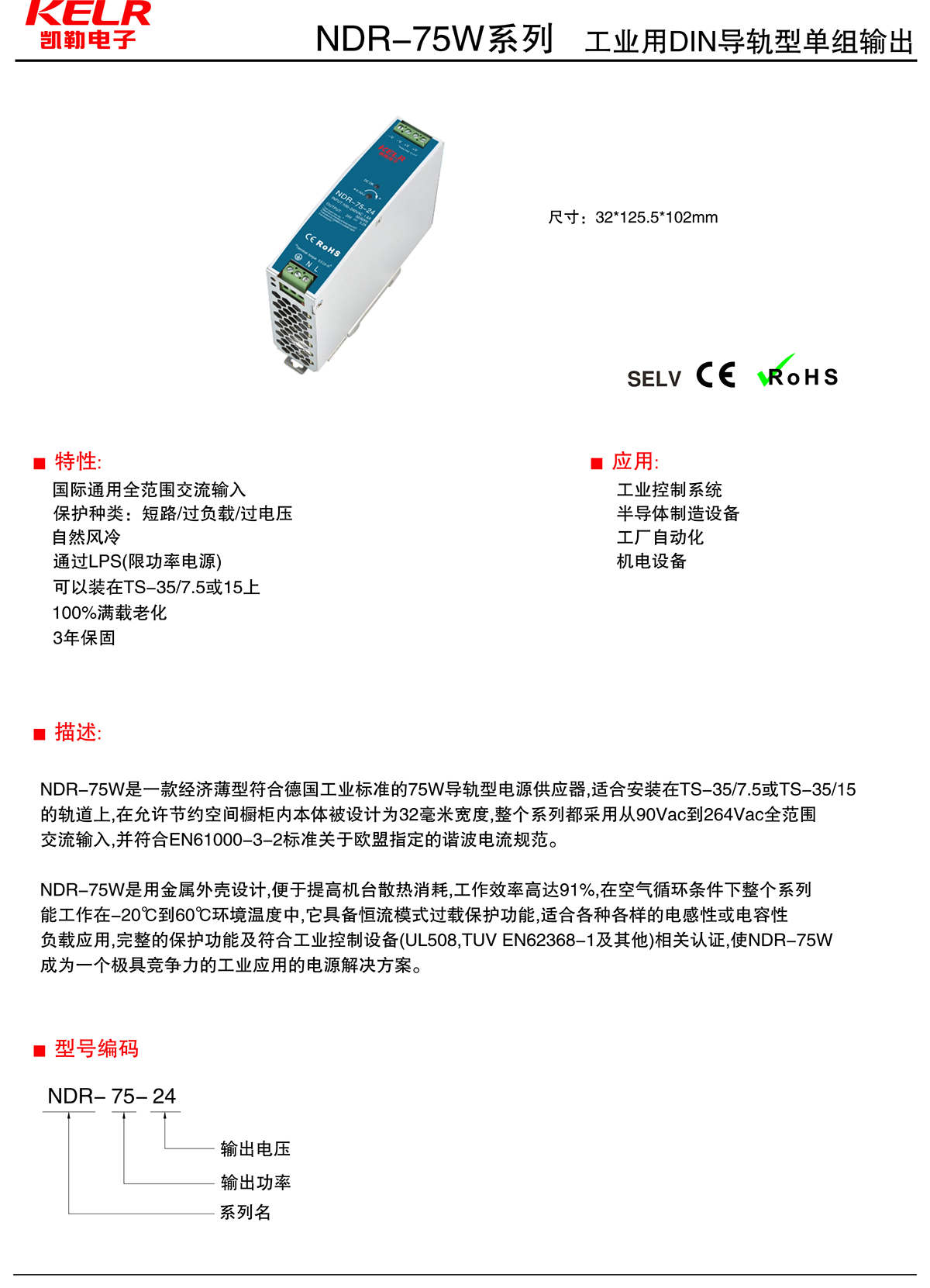 NDR-75W 系列 工業用DIN導軌型單組輸出