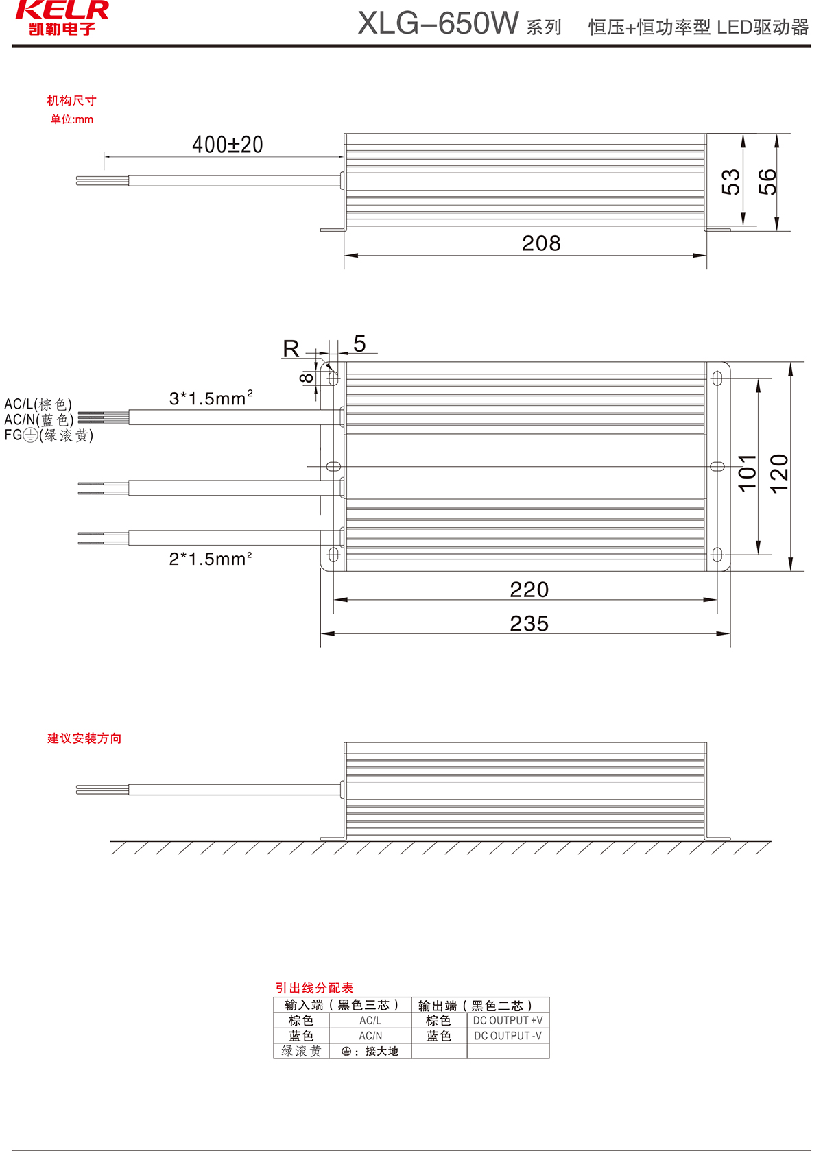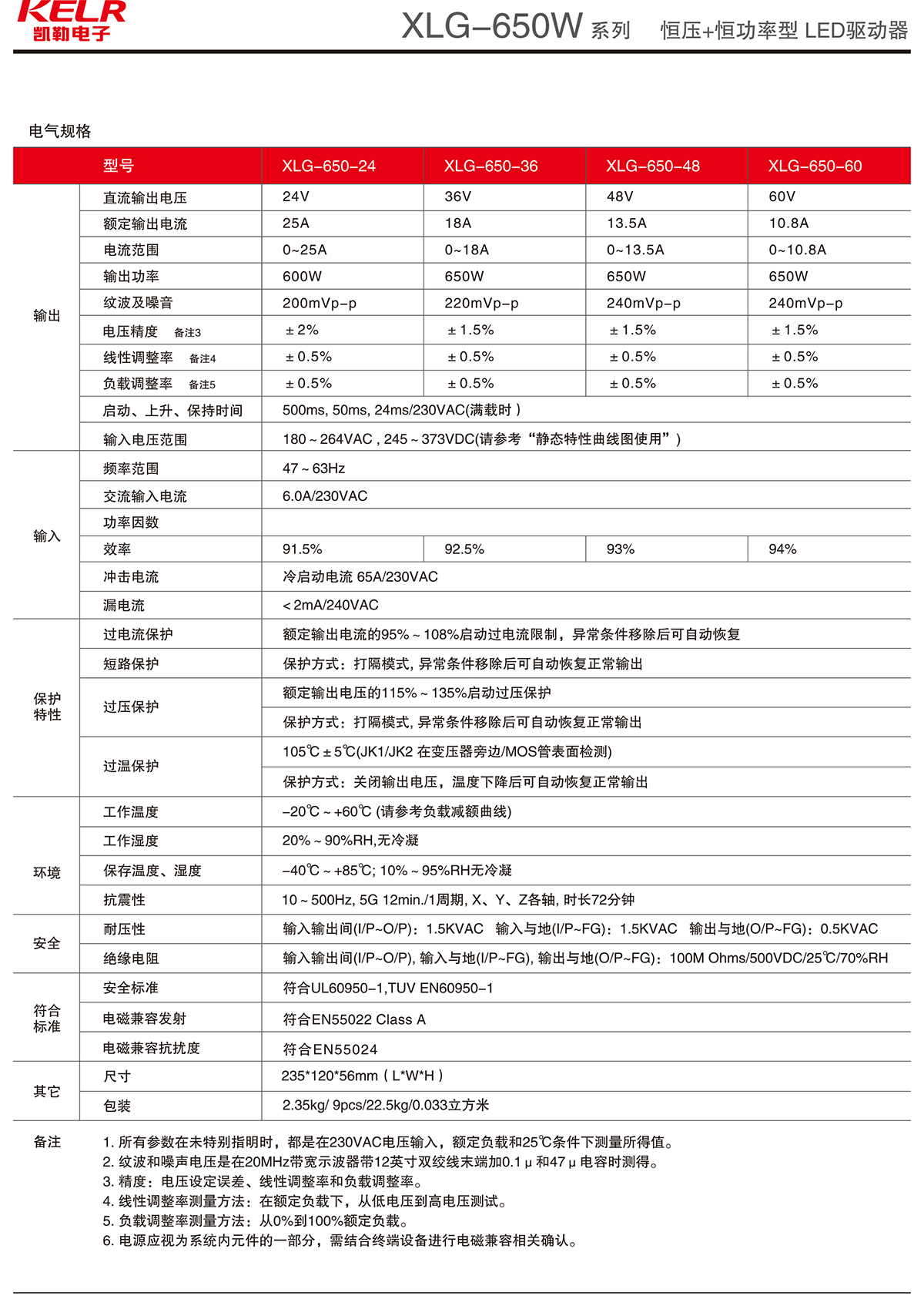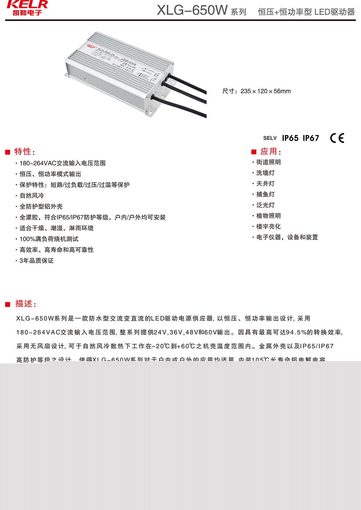 XLG-650-24 系列 恒壓+恒功率型LED驅動器
