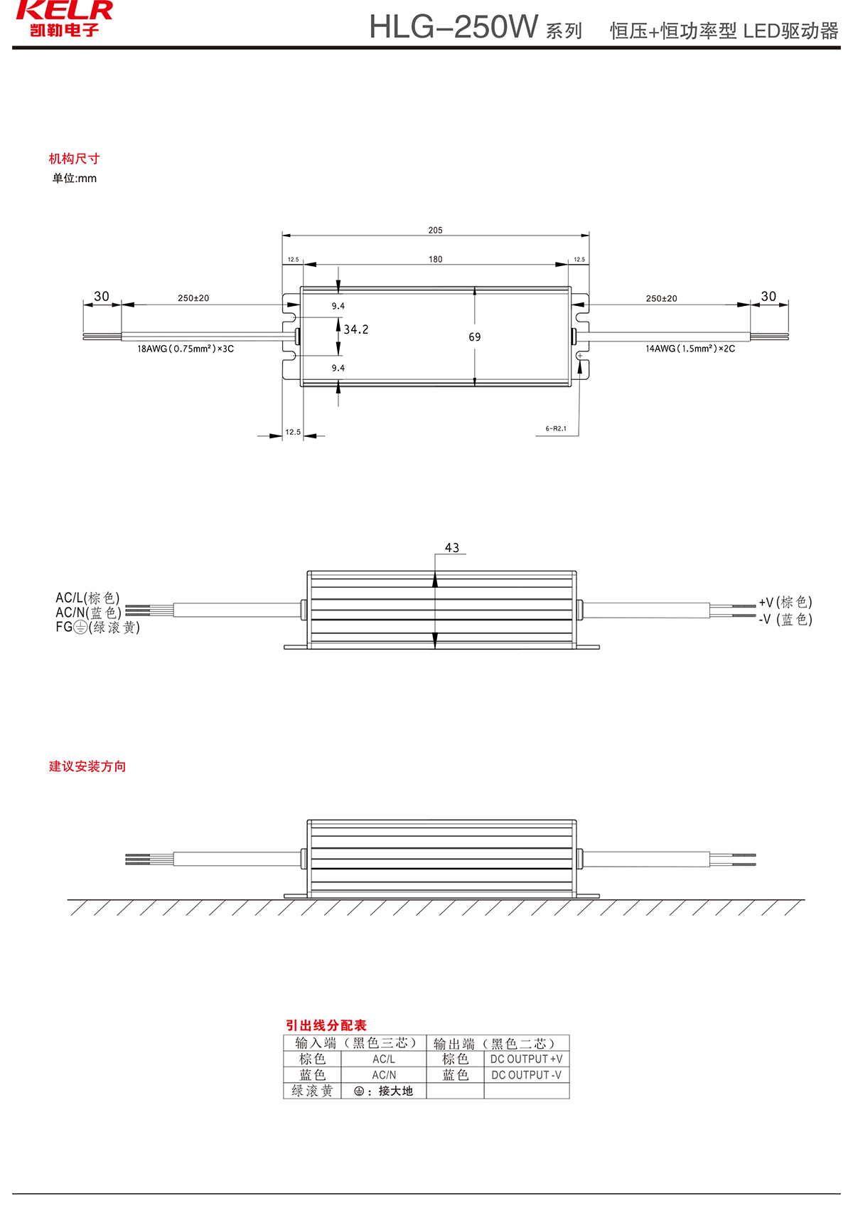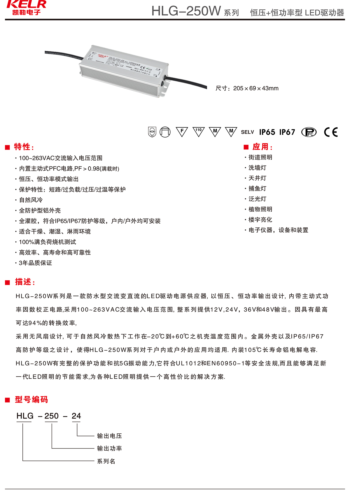 HLG-250-24 系列 恒壓+恒功率型LED驅動器