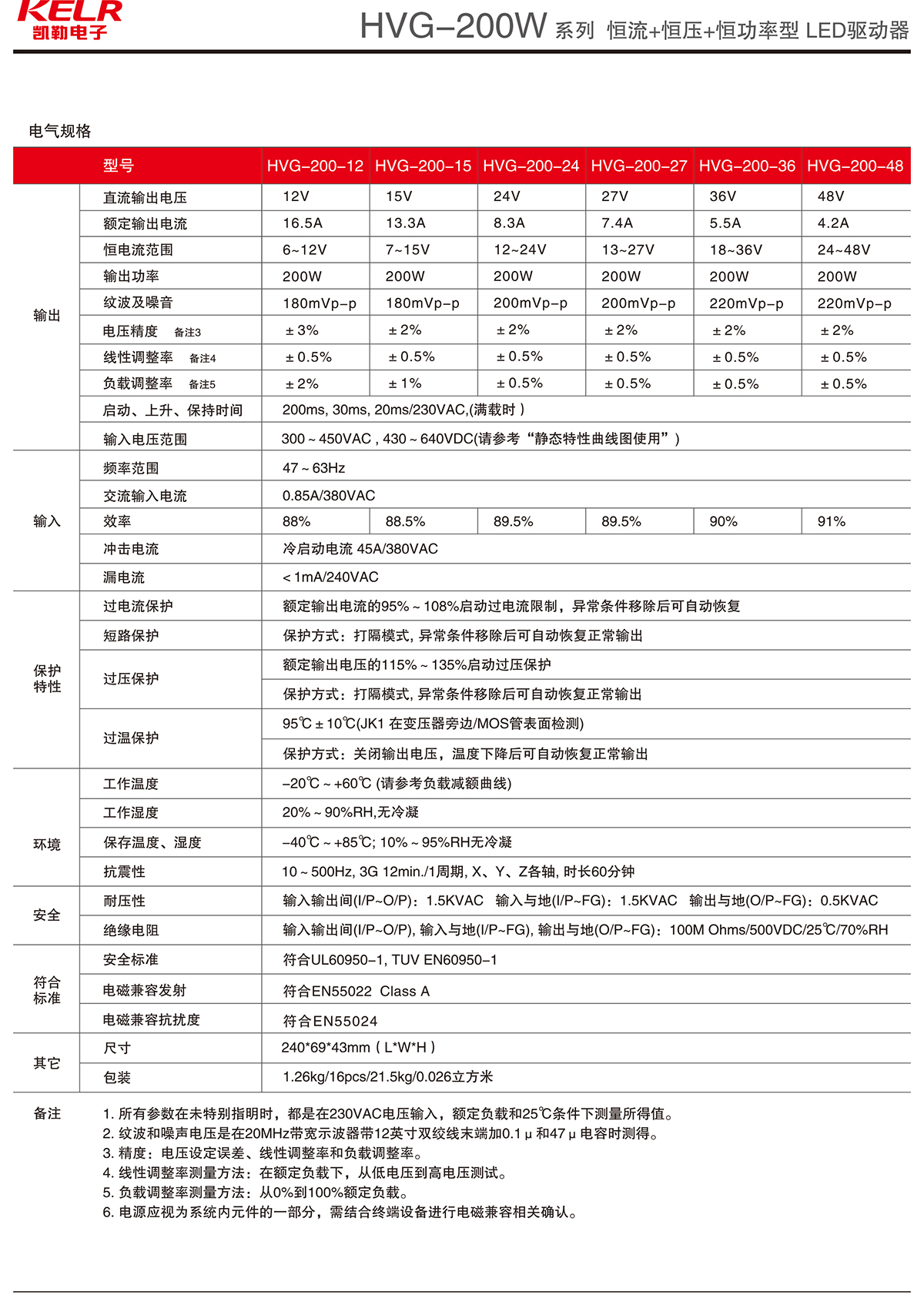 HVG-200-24 系列 恒流+恒壓+恒功率型LED驅動器