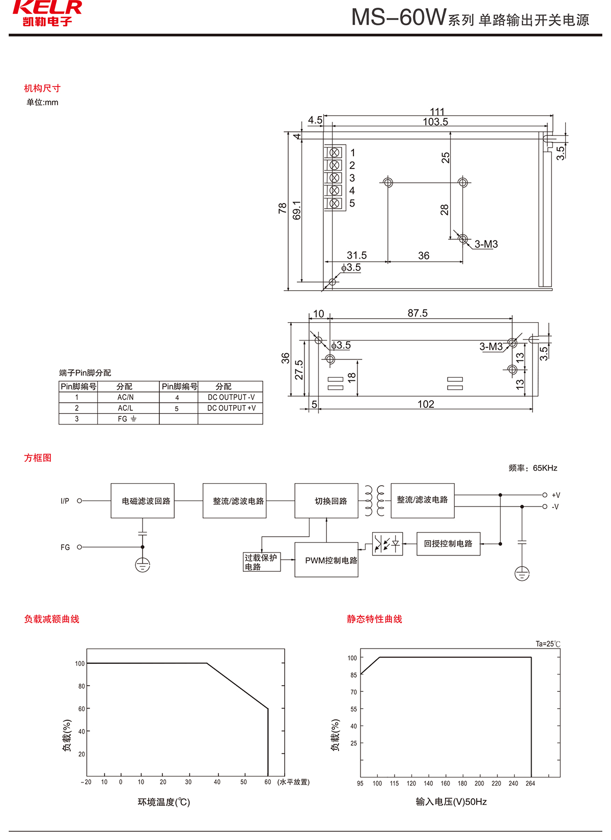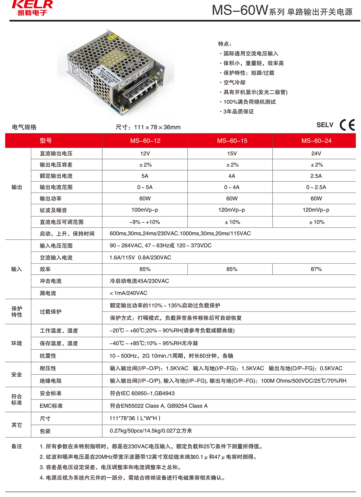 MS-60W 系列 單路輸出開關電源