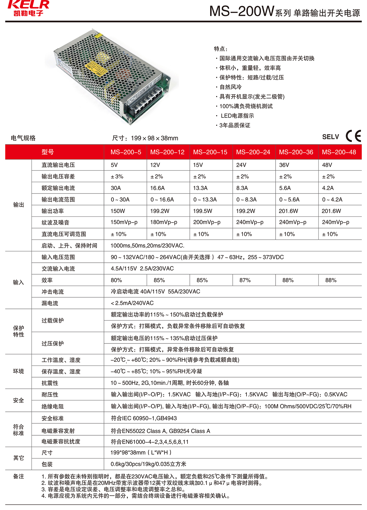 MS-200W 系列 單路輸出開關電源