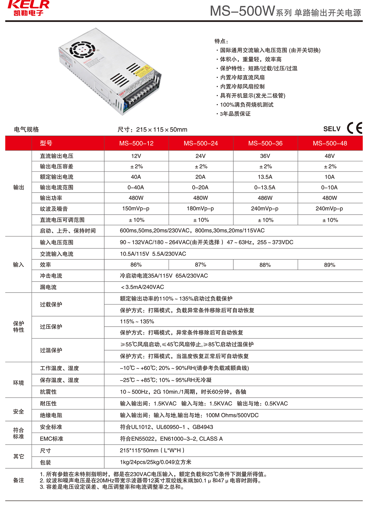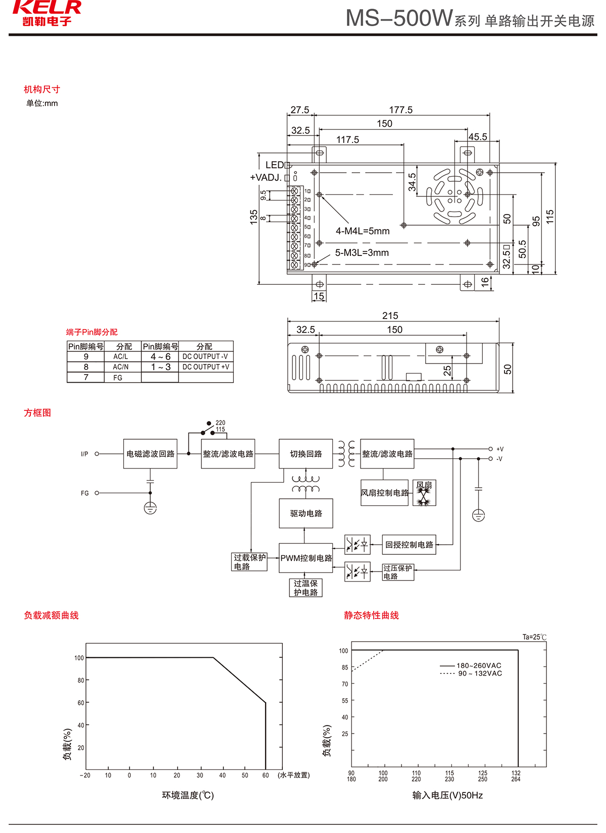 MS-500-24 系列 單路輸出開(kāi)關(guān)電源