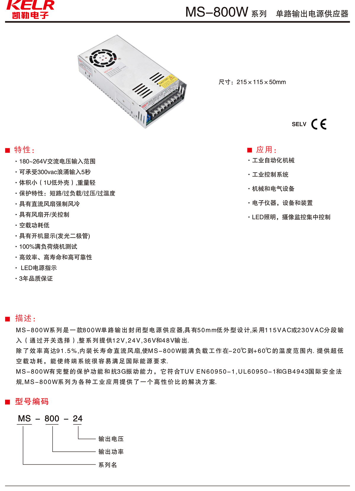 MS-800-24 系列 單路輸出電源供應(yīng)器