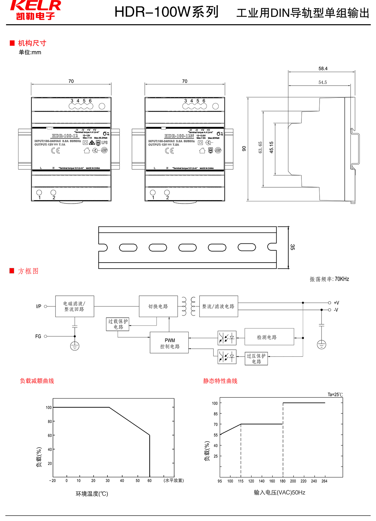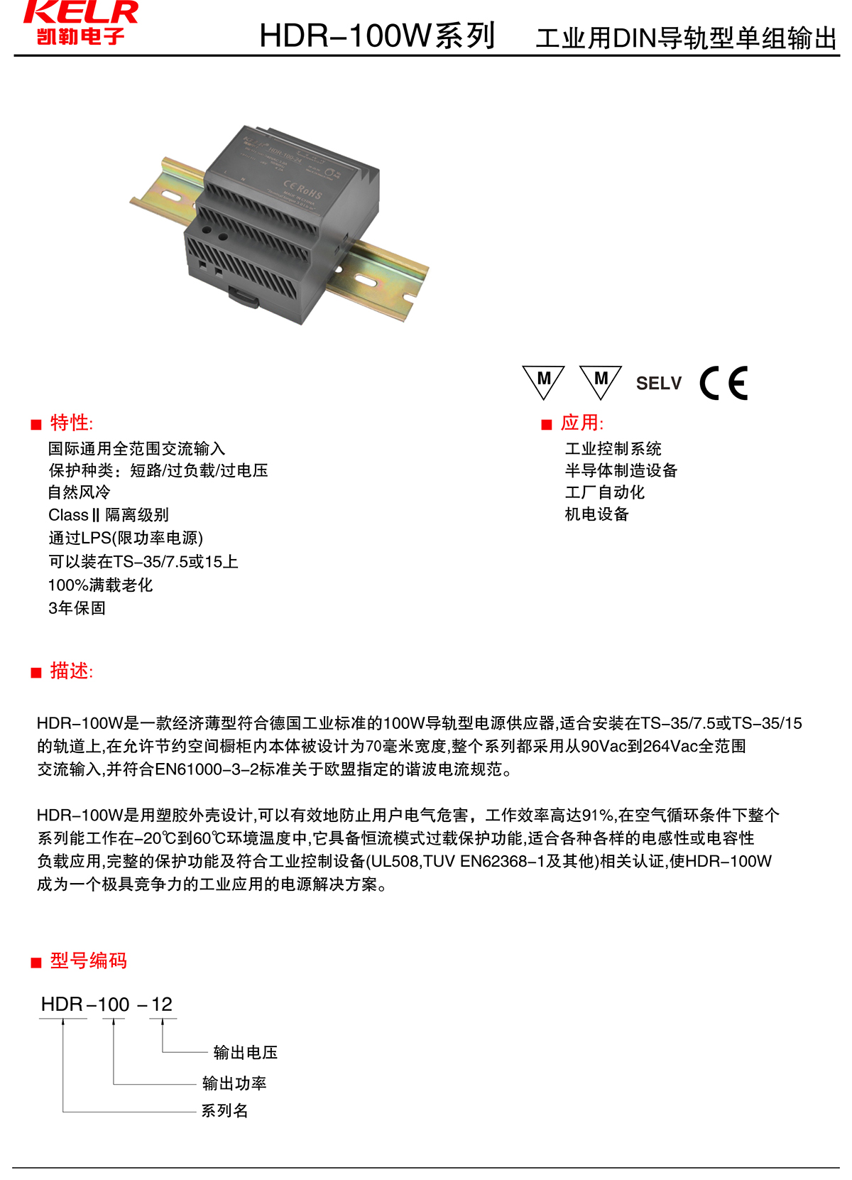 HDR-100W 工業(yè)用DIN導(dǎo)軌型單組輸出