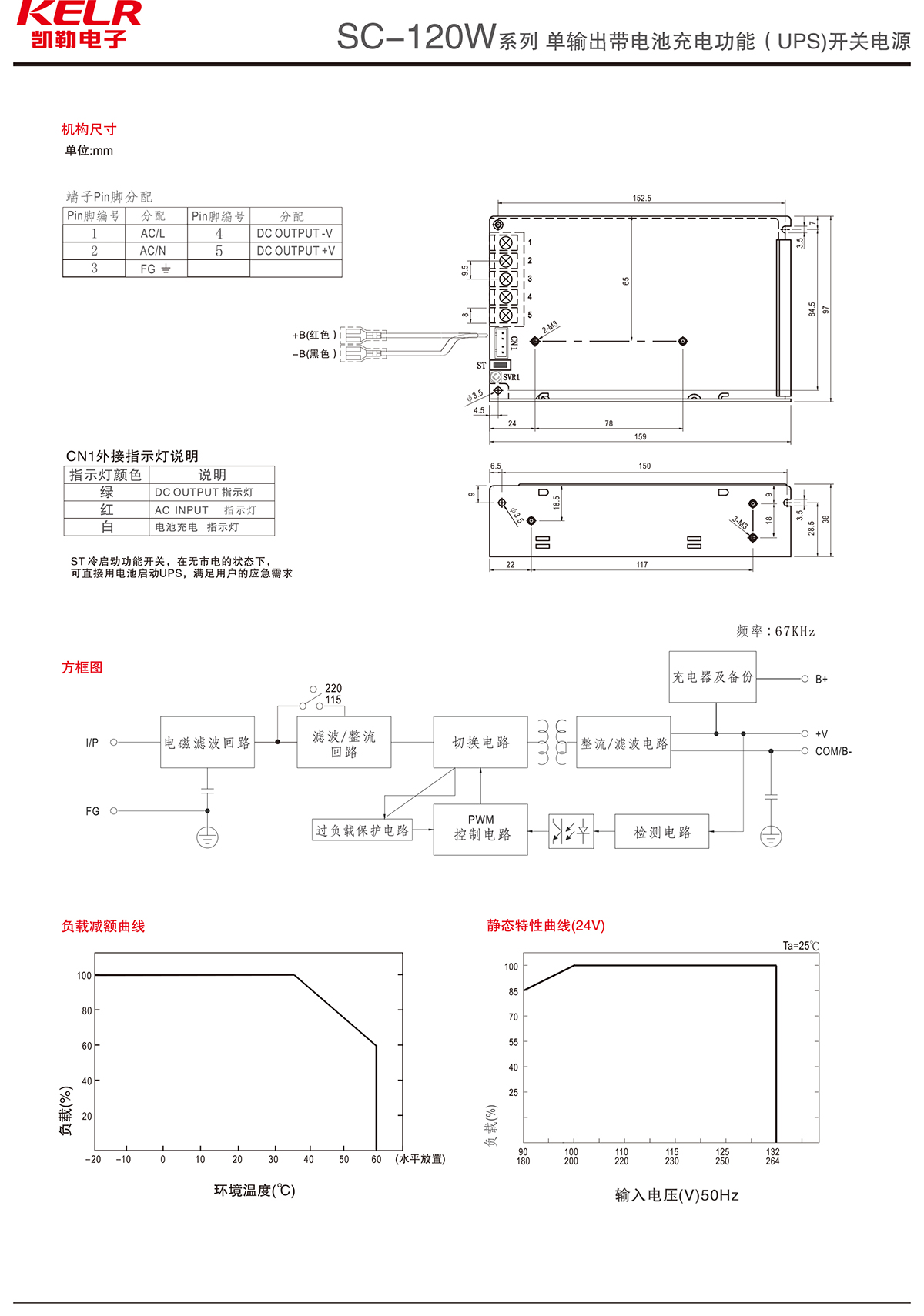 SC-120W 系列 單輸出帶電池充電功能(UPS)開關(guān)電源